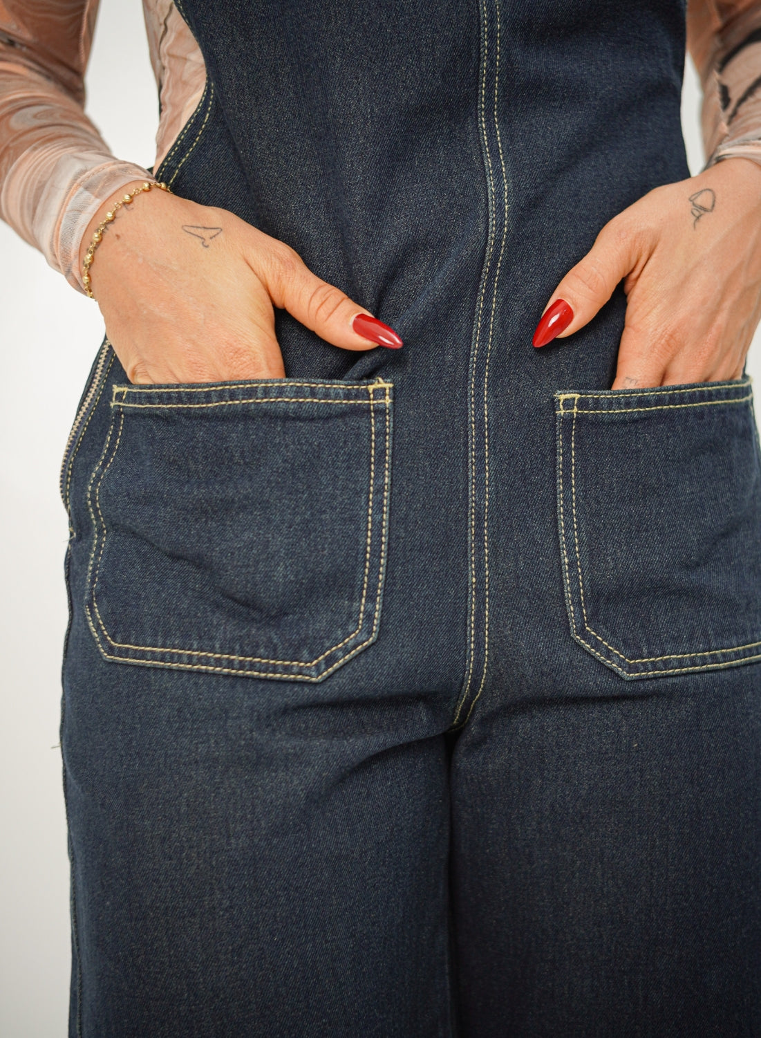 Designed for the modern woman who owns every room she walks into. This jumpsuit blends the timeless structure of denim with a flattering straight-leg silhouette, giving you comfort, confidence, and effortless style. The side zipper detail adds a modern edge while keeping the fit sleek and functional. From brunch to nights out, this is the statement piece your closet was missing.