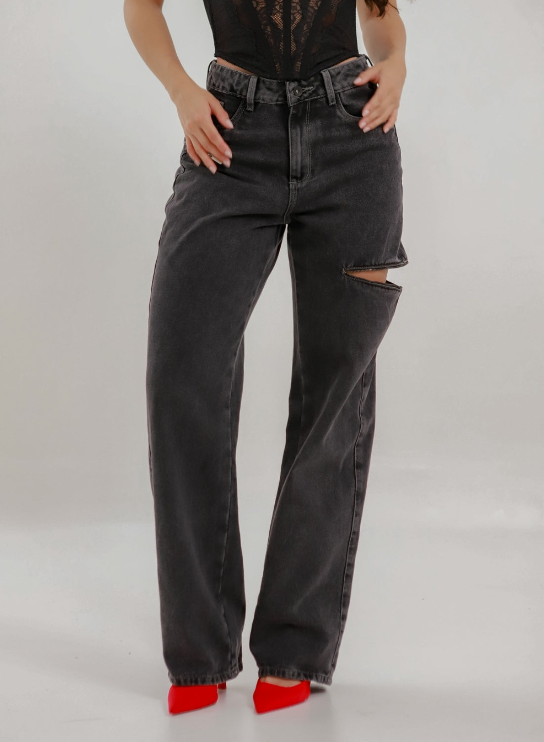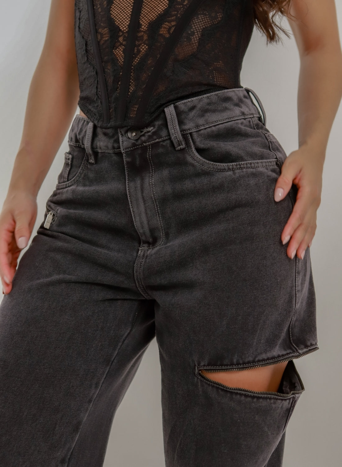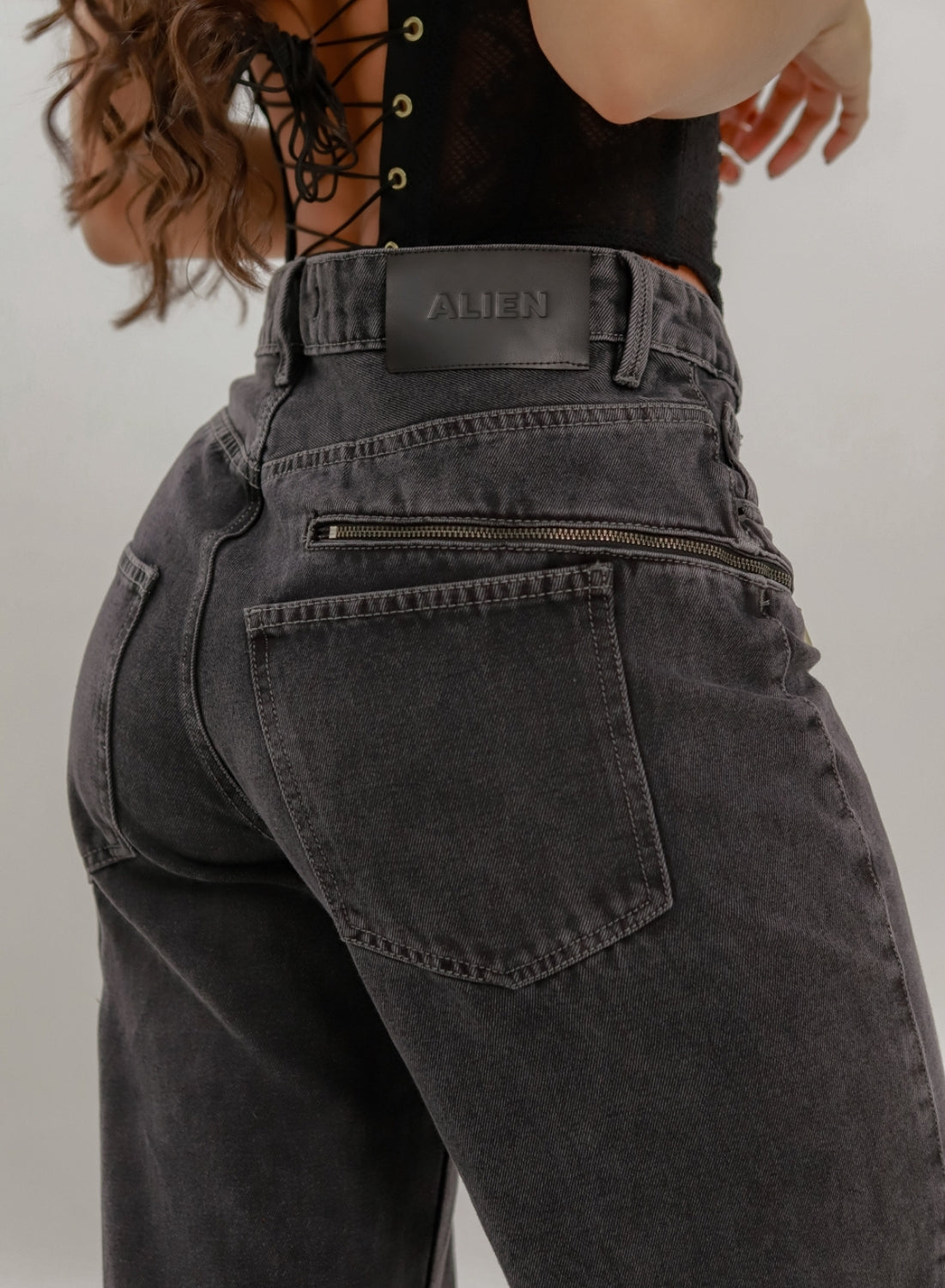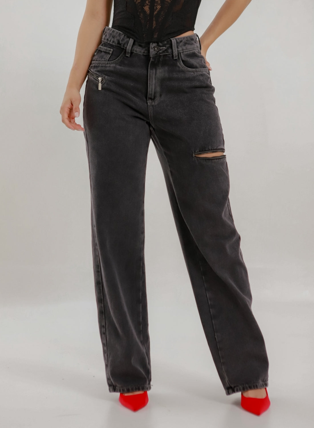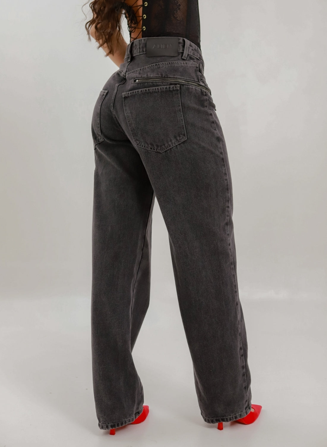 Loki Dark Gray - Women's Mid Waist Baggy Jeans