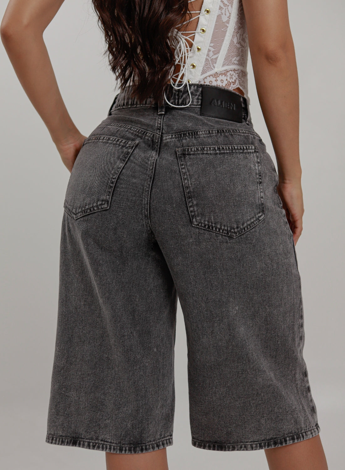 Built to flatter and designed to last, these jorts are made from soft rigid denim offering structure, durability, and comfort in one piece. The mid-rise waist enhances the natural shape, while the wide-leg cut provides ease of movement and a modern silhouette.
