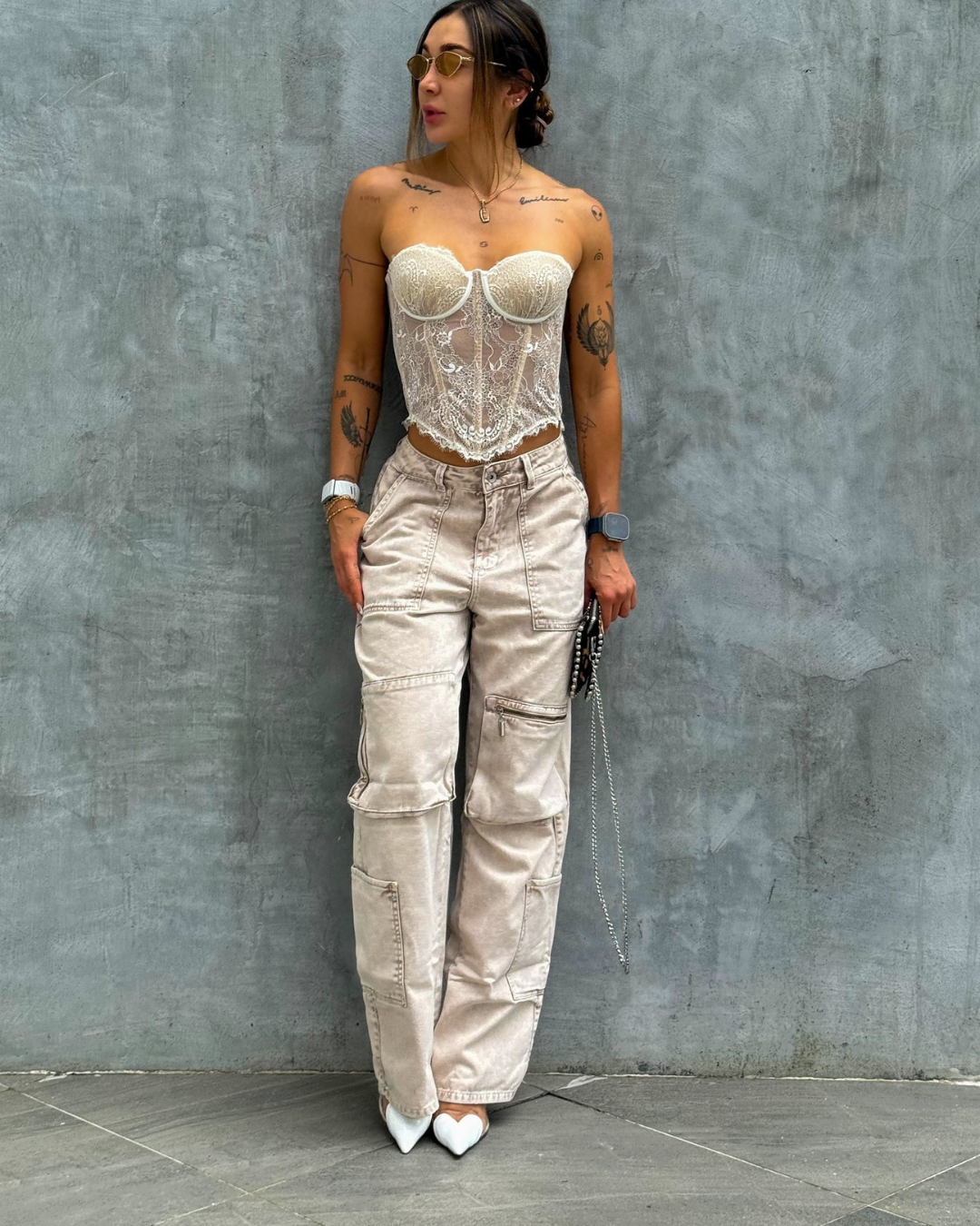 Sweet Milky Chocolate - Women's Low Rise Cargo Jeans