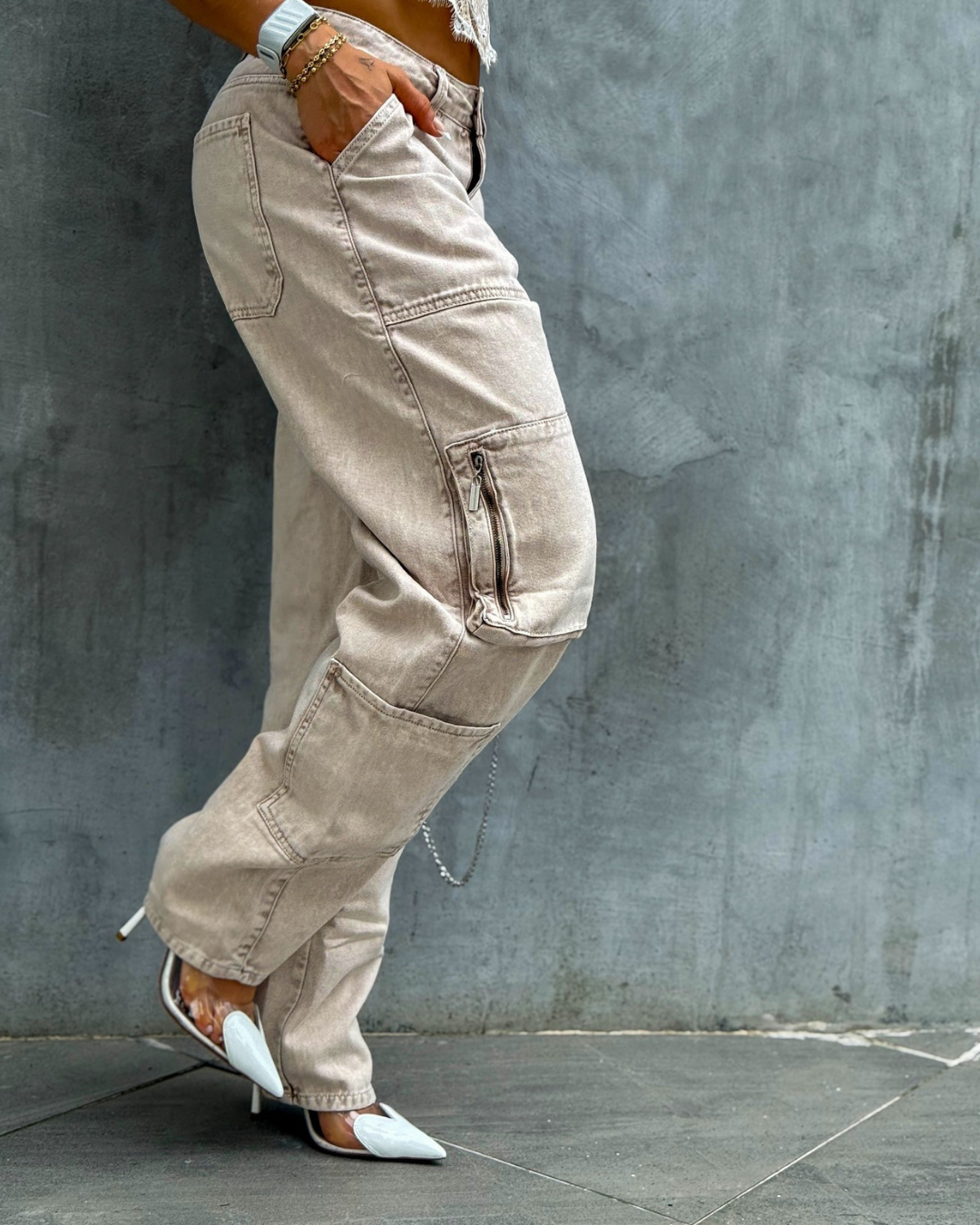 Meet the low-waist cargo jeans that redefine comfort and street attitude. Designed to be worn loose, lived in, and loved, these feature a distinct acid wash process for that coveted vintage style. Experience the relaxed fit that's the epitome of modern streetwear meets alternative edge. With bold luxury zippers and deep cargo-style pockets, these versatile jeans are simply the perfect fit for your bold wardrobe.
