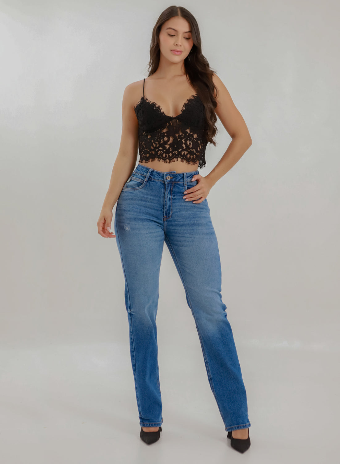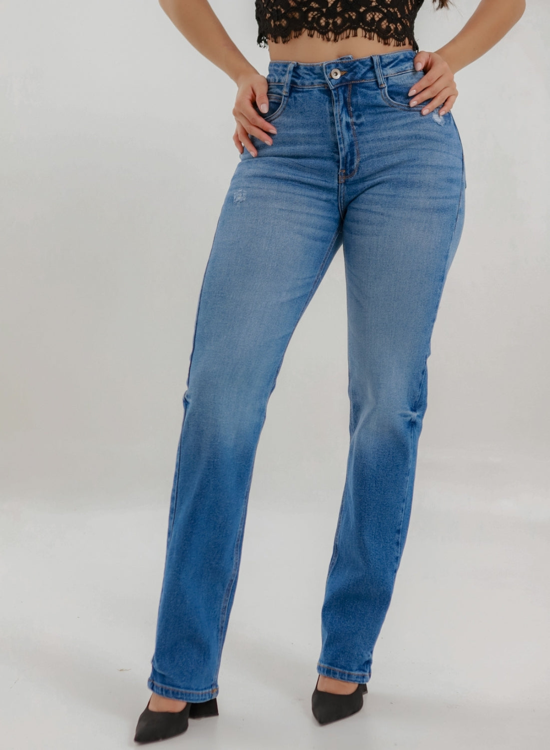 A modern take on a classic icon. This high-rise mom straight jean is designed to flatter your waist while keeping a relaxed, effortless fit through the leg. Crafted in medium-wash denim with subtle fading and light distressing, it delivers that perfectly worn-in look and perfect fit from day one.